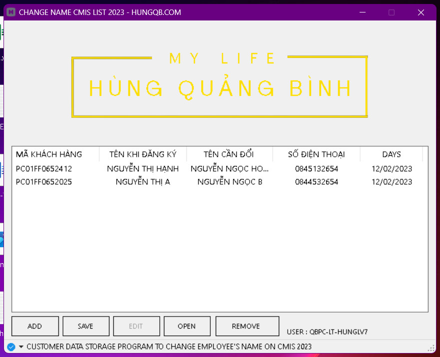 CUSTOMER DATA STORAGE PROGRAM TO CHANGE EMPLOYEE'S NAME ON CMIS 2023 @
